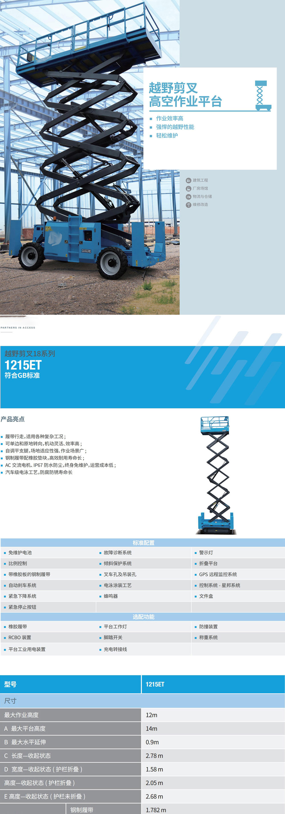 1215ET履帶剪叉式電動高空車